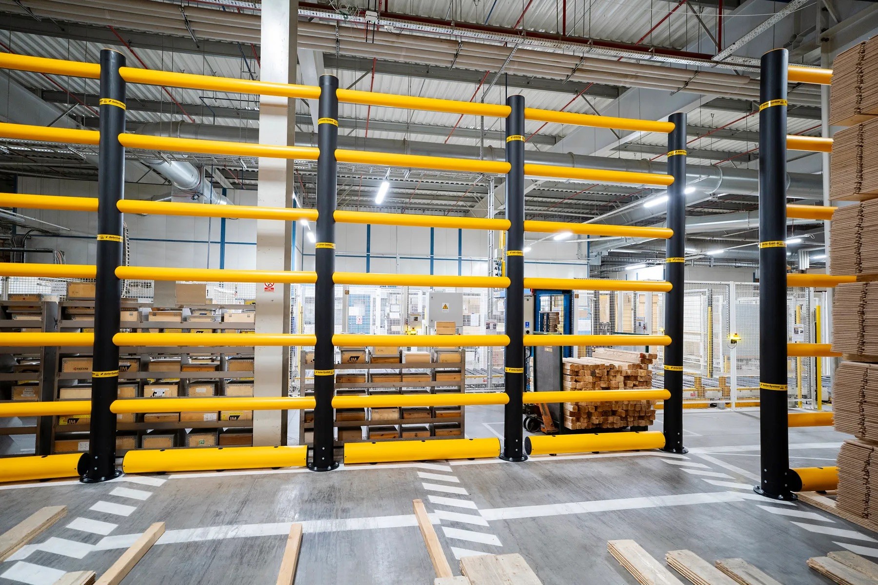 Barierele Wall Protector au fost amplasate strategic pentru a proteja zonele de depozitare pe înălțime împotriva deplasării mărfurilor și pentru a securiza spațiile de producție în care operează utilaje și roboți industriali. În același timp, barierele GB HD+, ranforsate în partea inferioară, au oferit protecție eficientă împotriva impactului produs de furcile stivuitoarelor care circulă la sol.